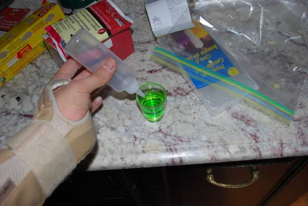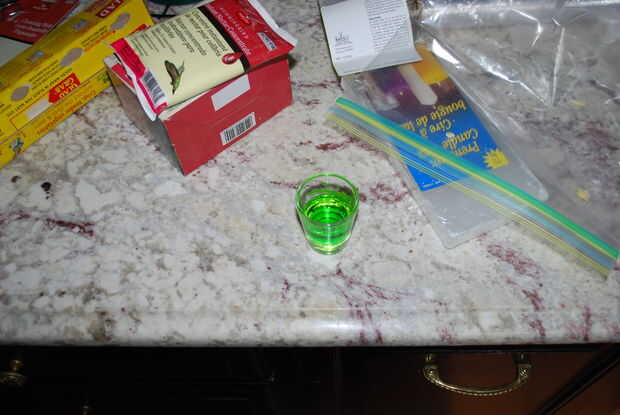 Apriete hasta que un poco de la bebida se vierte por el orificio de 1/8". No te preocupes si hay agujeros, es muy fácil de arreglar con un poco de cera y el calor de la pistola de pegamento caliente. Tapan el agujero de 1/8" con un pedazo de cera, calor con la pistola de pegamento caliente y BAM! Tú mismo tienes un lookin' bastante decente, adulto clasificado, NiK N labio botella.