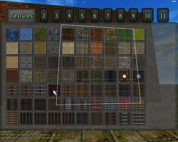 No muy seguro si compone esa palabra o no, pero de textura me refiero a pintura tus cubos para ver como hierba, arena o lujo paredes detalladas. Hay dos formas de hacer esto usted puede seleccionar el cubo y sostenga y mientras se desplaza, para ver las texturas como vas. O puede utilizar el selector de textura pulsando F2. Pasando por la selección es simple, pase el ratón sobre un número para pasar a esa página y haga clic en una textura a aplicar, luego golpeó F2 para cerrar la ventana del selector.