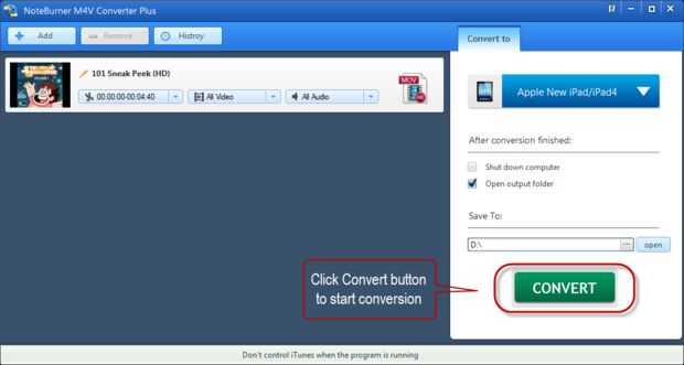 Presione el botón "Convertir" grande en el panel derecho para iniciar la conversión. Cuando se termina, la carpeta de salida será popup automáticamente. Puede encontrar el archivo de video convertido en formato mov o mp4 hay.