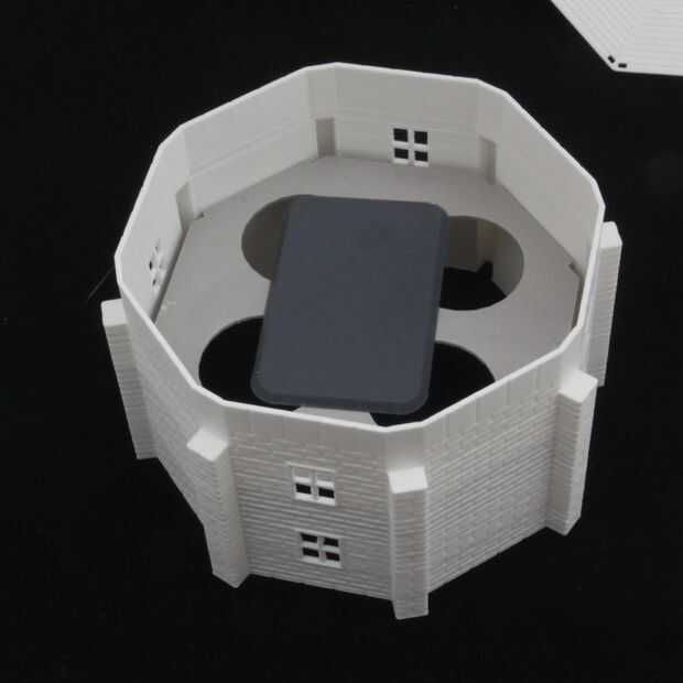 Las velas se encenderán su axel y la parte superior del molino de viento se puede girar para "seguir el viento". En la escala 1: 100 tamaño de llamas de la guerra allí es dos unidades, en medio bases, en dos plantas de la estructura inferior con la torre siendo extraíble. Una tercera unidad, en una pequeña base, también se podría poner en la torre aunque esto no es una característica del modelo diseñado.