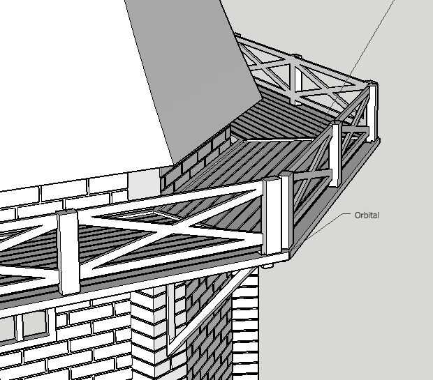 Hay ocho segmentos de barandilla que necesitan ser instalado alrededor de la plataforma que orbita el molino de viento. Cada uno de ellos tiene dos lengüetas que deben ser introducidas en la plataforma. Los confines de estas fichas pueden sobresalir por debajo de la plataforma y deberán ser cortado con un cuchillo de la manía. Una vez que los segmentos de la barandilla son insertados en sus ranuras los extremos de cada segmento deben estar apenas tocando el segmento pasamano al lado. Debe ser pegados en este momento y donde se insertan en la plataforma orbital.