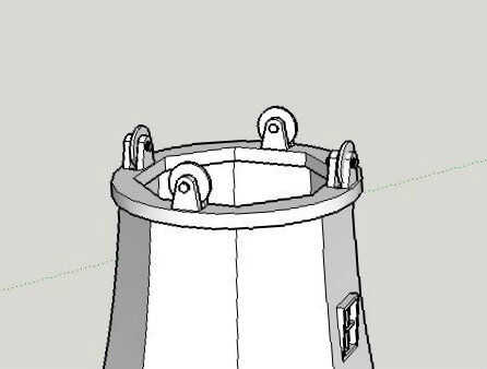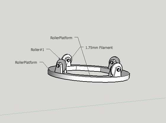 La plataforma del rodillo permite que la parte superior del molino de viento para girar así como el molino de viento de escala completa. Deben poner las ruedas en ejes que se cortan de una longitud de 1,75 mm filamentos. Los extremos del filamento se pueden derretir y comprimidos para mantener el filamento deslizamientos el rodillo mientras sigue permitiendo que gire. Si el filamento de 1,75 mm no entra por los agujeros de ese pequeño archivo recomendé hará el truco.