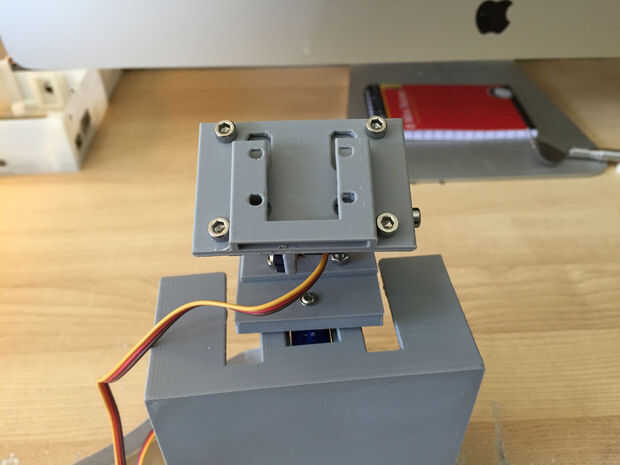 esto es simple, barato y fácil de construir el proyecto que utiliza la impresión 3D para construir pequeñas piezas con tolerancias estrechas.  El objetivo de este proyecto era construir un sistema de inclinación para un pequeño láser y una cámara en