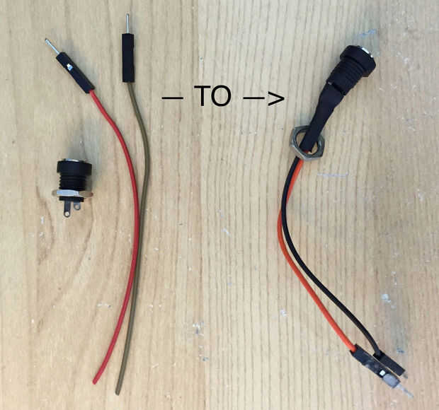 Eso es casi todo hecho. La única tarea restante es el corto par de conductores para la soldadura del "5.5 x 2.1 mm DC Power suministro Jack Socket hembra panelable". Este conector se colocará a través del orificio en el caso y suministrará electricidad a la placa.