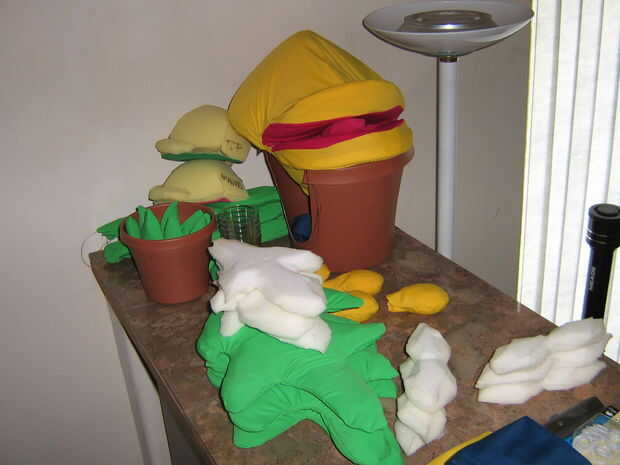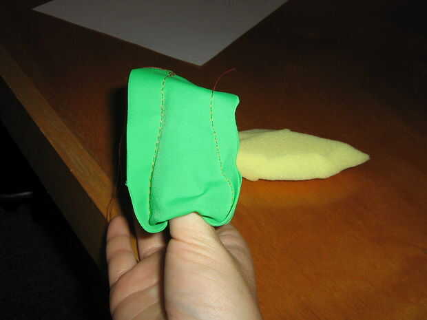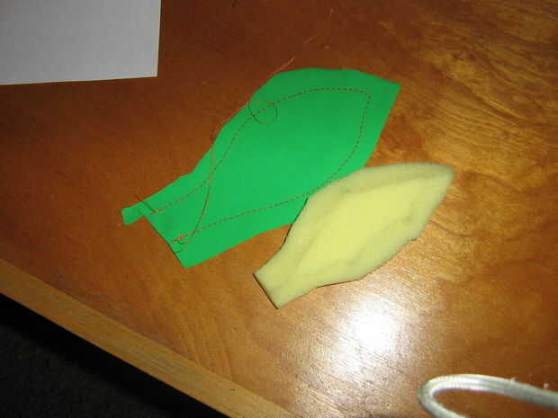 Con el corte de hojas de espuma, la piel de ellos es muy sencilla de hacer. Mientras que la espuma se puede pintar directamente, una tela 'piel' lo hace todo mucho más duradera (especialmente en el largo plazo, como la espuma es propensa a rasgarse fácilmente) y permite colores más brillantes y más vivos. Trazar la espuma las hojas en la tela y traza a su alrededor de un patrón básico. Cortar aproximadamente 1/4" a 1/2" alrededor de este obtiene una piel simple que puede ser cosida juntos alrededor de la pauta trazada. Estoy a favor de una puntada de zig-zag para evitar que la costura de corte al hilo bajo el estrés del rodaje, sobre todo con las hojas más pequeñas. Para facilitar el giro, arranque girando sólo la punta de la hoja, luego tirando de él sobre la espuma corte parece hacer todo el proceso mucho más fácil. Puede ser un poco difícil de configurar pero es más fácil que rellena la forma un poco tiesa en la tela. Las imágenes hacen este proceso un poco más claro.