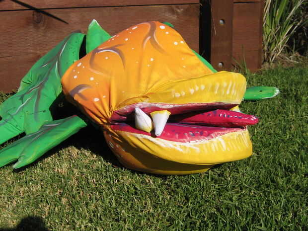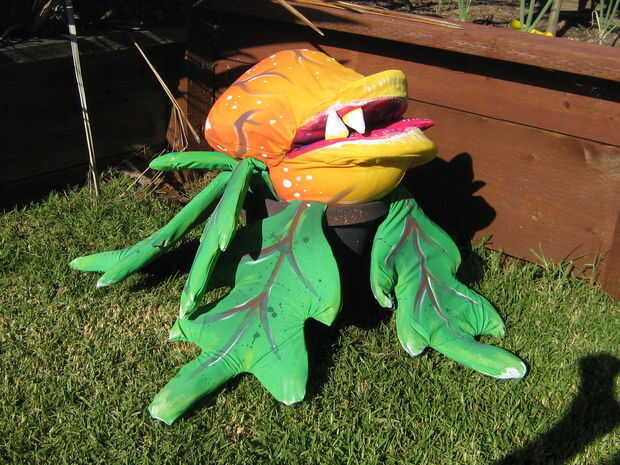 No todo el mundo tiene una vuelta de la esquina, así que tenemos que encontrar una come-hombres de Mushnik en otras partes de la planta. Este es uno que decidí hacer como decoración para sacar para Halloween (aunque admito que ha pegado alrededor de