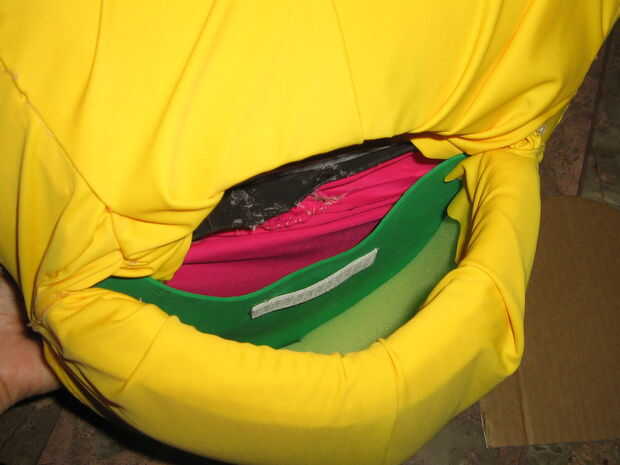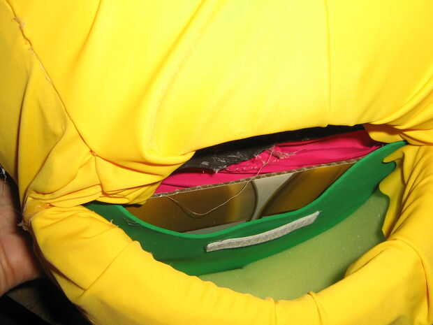 Ambas mitades de la boca de la marioneta son sellados con una placa artesanal espuma boca, trazados, forma y pegados en lugar. He encontrado que debido al tamaño de esta marioneta, necesitaba apoyo un poco más rígido y utiliza un poco de corte de cartón a tamaño para caber dentro de esta espuma y pegado en lugar ayudó a dar algunos más solidez para mejor control.