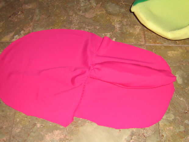 Demasiado corto para compensar donde la boca vendrá junto con la cabeza y terminó con la parte superior de la boca, la parte inferior y una lengua. La lengua, rellena con un poco de espuma de tapicería forma, se entiende como un títere de dedo, y encontrar el centro de ambas mitades de la boca en que había cosida a mano, asegurándose de no coser la abertura cerrada. Con eso en lugar terminé fuera de la Unión de la parte posterior de la boca con una puntada zig-zag. Esto servirá como bisagra de la mandíbula en el lugar.