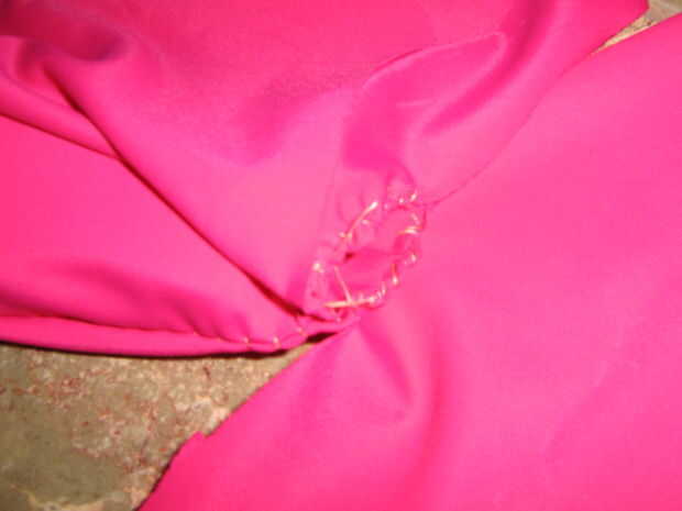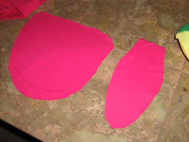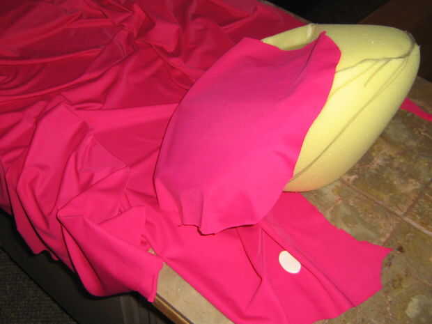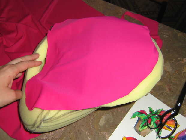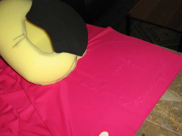 Empecé pelando fase II con el interior de la boca, drapeado de la tela sobre la marioneta, determinar un corte que sería el más conservador de la tela, rastreando cosas hacia fuera con un rotulador o tiza, luego cortar cosas.