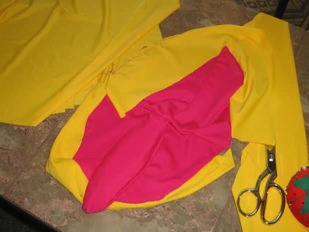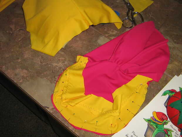 Un patrón más preciso para cubrir la cabeza podría usarse cinta firmemente la forma en la cinta de embalaje marrón, y luego marcando un patrón de sharpie y retirar las piezas poco a poco, pero para ahorrar en tiempo, y porque me sentía seguro de lo que se necesita para formar la piel, yo simplemente vestido tela sobre la cabeza, corte y costura como fui.