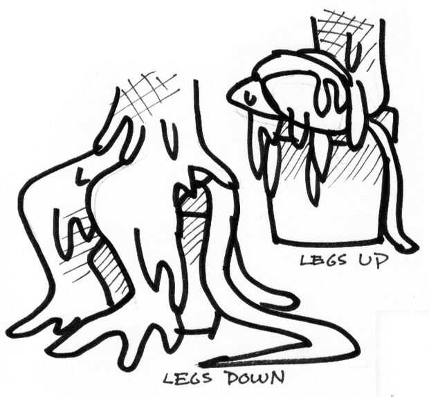 Algunos ' crecimiento ' / vicioso demanda (aquí se logra por su titiritero hacia una posición vertical desde una posición de piernas cruzadas sentado uno y sacudiendo sus patas como pasar de sentado a de pie.