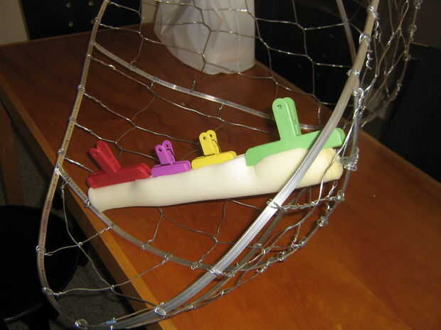 Cuando más tarde esto resultó demasiado flexible, estas barras fueron reemplazadas con tubo de PVC que no requieren el relleno para un agarre cómodo. Alambre de aluminio también debe reemplazarse con alambre de acero más robusto, y ambos cambios fueron realizados con una simple extracción y reemplazo.