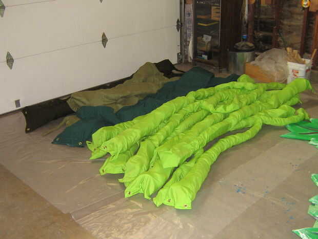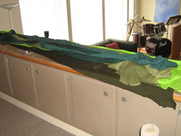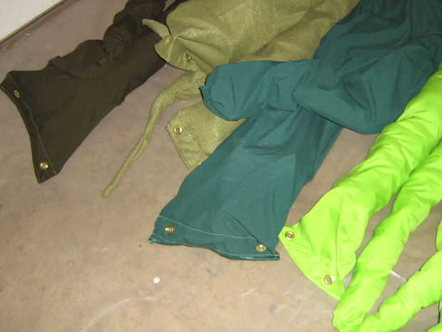 Las vides fueron construidas similares a las raíces de la fase anterior y fueron lo último que he construido. Consisten en un 10' cónico cosido de la tela, entonces dado vuelta. Son rellenos con materiales de desecho, luego cosidos apagado en los extremos de una manera limpia y entonces perforados a través de dos arandelas que les permitirá estar ligada a la pasarela.