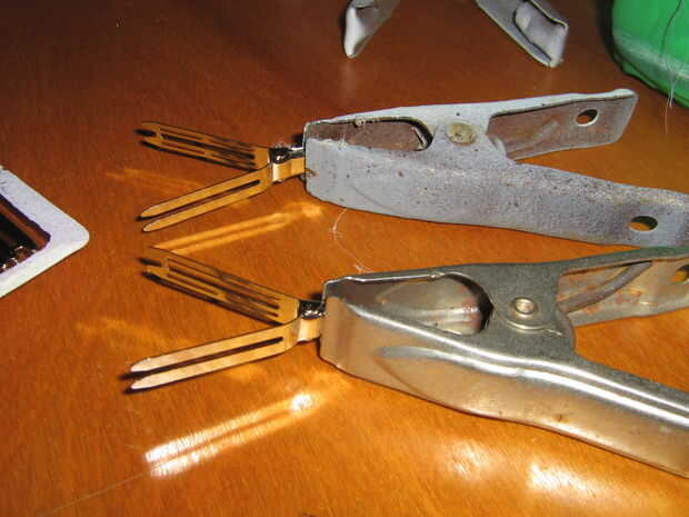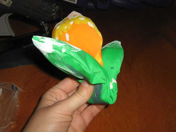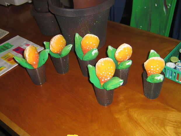 Yemas se agregan a los clips y diademas y macetas, y todo confluye en un todo coherente. Mientras producción revestimiento cosas como esta, yo uso pinzas para ayudar a sostener el pegamento hasta que se enfríe por lo que puedo montar lo más posible a la vez (como sostienen cierres abierto para pegar los brotes para ellos).
