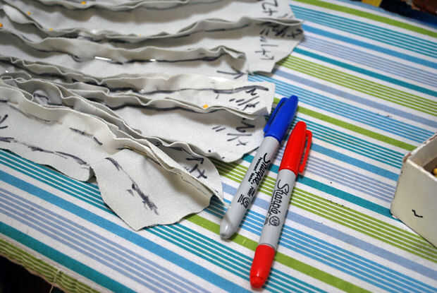 Opté por trabajar en una sola pieza a la vez, así que todo lo que necesitaba para hacer es etiquetar los puntos de partida. Entonces sacó un rojo y un rotulador azul para volver a marcar mis piezas.