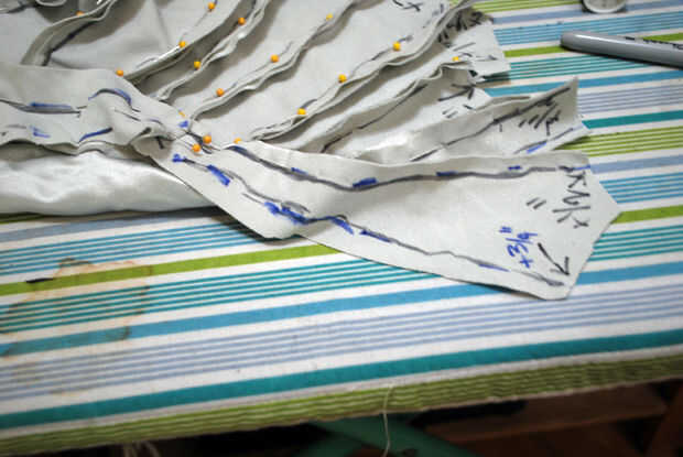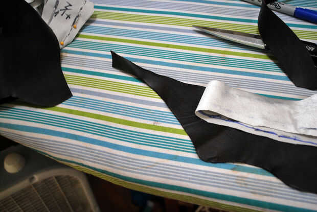 Una de las cosas agradables sobre la piel es que no debilite o desmoronarse cuando usted corta. Esto hace bastante fácil de armar. "Piecing juntos" significa tomar una pieza de material y agregando otra pieza a él. Ya que yo estaba pensando ya en tener muchas costuras en obra de arte, añadiendo una costura a la mitad de una pieza no fue es gran cosa.