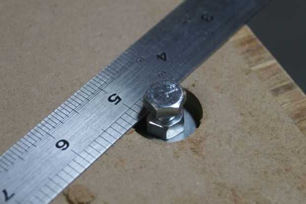 Es habitual poner tornillos con tornillos desde la parte inferior, pero hay un límite en cuanto a cómo muchas veces usted puede apretar un perno en MDF. Para usar los tornillos de la tapa abajo, decidí incorporar las cabezas de los pernos dentro de la tapa.