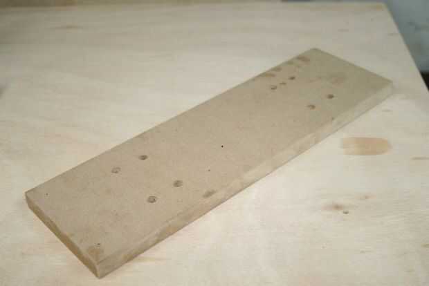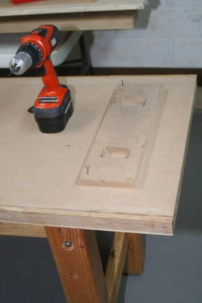 Primer paso fue cortar un trozo de MDF del tamaño de la base de la mordaza. Describen a continuación las posiciones de los orificios de tornillo en él, entonces agujeros pequeños driilled. También perforé los agujeros más grandes en las esquinas de las aberturas rectangulares y el se unió a ellos con una sierra de calar.