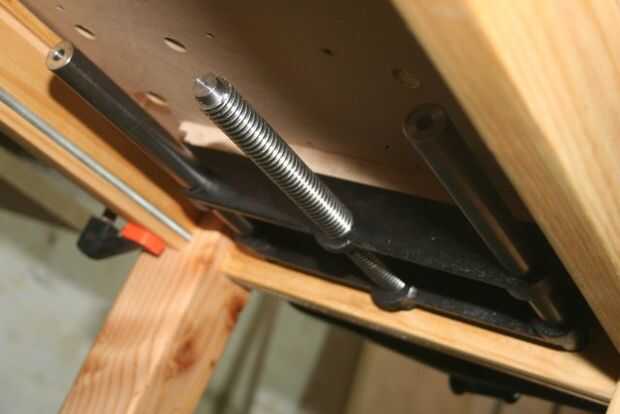 Marqué los agujeros poniendo un centro de pasador en el extremo de un pedazo largo de espiga 1". Ejecutar a través de los orificios de la placa base y bang en su extremo con un martillo. Gire un poco y golpearlo otra vez y repetir. Es que el centro del pasador no será precisamente en el centro de la clavija, por lo que estará haciendo un pequeño anillo de marcas. El centro del agujero es, por supuesto, el centro de ese anillo.