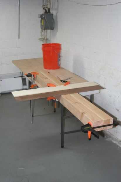 El diseño original tenía una altura de 35-1/8". Su parte superior dos capas fue 1-1/2" de grosor, por lo que sus piernas eran 33-5/8" largo. Quiero una altura de 35", pero estoy usando una tapa que es 3" de espesor. Mi sótano es cualquier cosa menos nivel, por lo que estoy usando niveladores ajustables de 3/4" a 1-1/2". En otras palabras, quiero que las piernas, que son unos 31-3/4" de largo. (Si no está utilizando aplanadoras, las piernas necesitan longitudes precisas. Los niveladores dan unos 3/4" de ajuste, por lo que la precisión es menos necesaria.