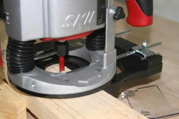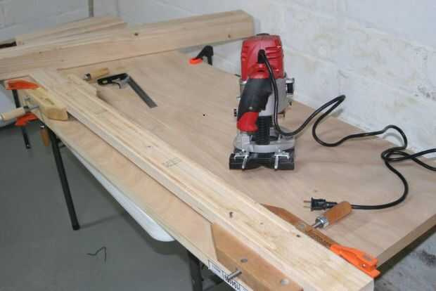Hay una serie de trucos para utilizar un router. En primer lugar, la broca gira en sentido horario, al mirar hacia abajo en el router desde la parte superior. Esto significa que cuando usted corta con la rebajadora de izquierda a derecha, la broca tenderá a tirar el router alejado de usted, y cuando pase de derecha a izquierda, el router se tire hacia usted. Por lo tanto, si te engancha a la guía de borde en el lado cercano de la Junta, ruta de izquierda a derecha y cuando usted está enganchando por el otro lado de la Junta, la ruta de derecha a izquierda. En segundo lugar, compruebe siempre la posición de la broca en el material de desecho. Sus probabilidades de conseguir exactamente por el ojo derecho son nulas. En tercer lugar, no cortar más de 1/4" profundidad en un solo paso. Queremos un bosque profundo de 3/8", así que su primer pase en 3/16", o por allí y hacer una segunda pasada para llegar a la profundidad.