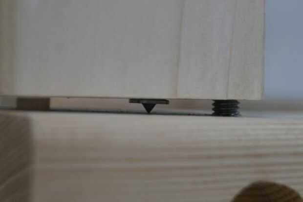 Perforar un par de agujeros de 3/8 en cada extremo de los tirantes corto, poco más de la mitad de la profundidad de los tacos, con un poco de puntas brad. Estas camillas tienen ya un surco a su largo, centrado en el borde inferior. Colocación precisa no es necesaria, pero hacer el seguimiento de que parte es. Necesitamos un agujero en cada extremo de cada camilla. Tenga cuidado de mantener estos agujeros cuadrados, que no quiere correr en los ángulos.