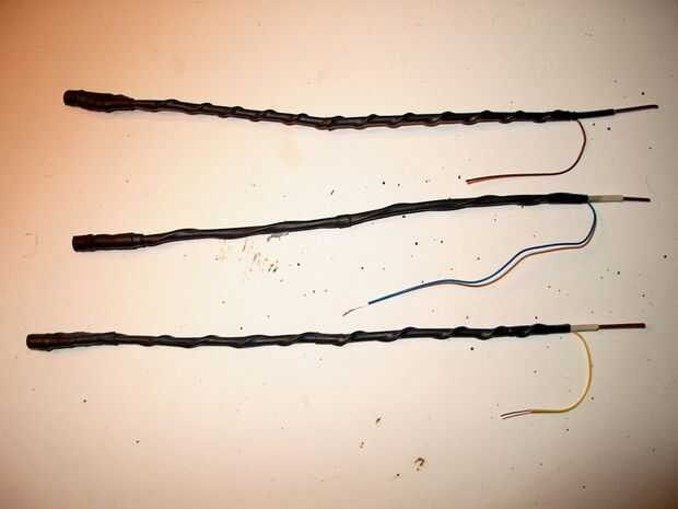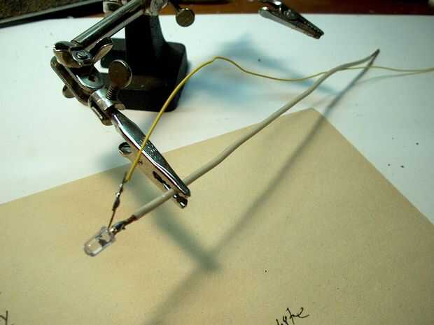 Cortar tres trozos de alambre de cobre duro, aislado cerca de 12" de largo. Utilicé cable de casa de Romex reciclado. Haga lo siguiente para cada tallo. Tira de 1/4 de pulgada de un extremo y 3/4" desde el otro extremo del alambre rígido. Soldar el cable de tierra del LED (uno menos) hasta el final de 1/4". Tenga cuidado al calentar el alambre de cobre grueso en lugar de la cabeza de LED para evitar el sobrecalentamiento lo. Cubrir la Unión con un pedazo corto de tubería del encogimiento del calor. La soldadura 20" pedazo de cable de conexión al positivo del LED (el cable más largo). Cubrir esta articulación en un pedazo delgado de también la tubería del encogimiento del calor. Envuelva el tiempo positivo uniformemente alrededor del alambre rígido, espaciado aproximadamente 1/4-1/2" de distancia y seguro la parte inferior con un trozo de calor tubería del encogimiento del justo sobre el final del aislamiento. Esto debe dejar con al menos unas pocas pulgadas de positivo y 3/4" de la negativa de cobre pelada plomo sobresale de la parte inferior del tallo. Yo entonces había reforzado el LED con unas pocas capas de tubería. Me Coloque la tubería en el extremo del LED y reducirlo con cuidado para crear un efecto de 'spotlight'.