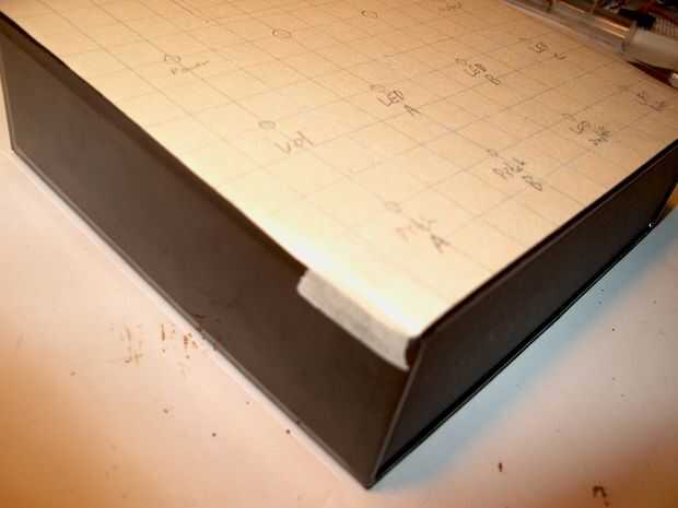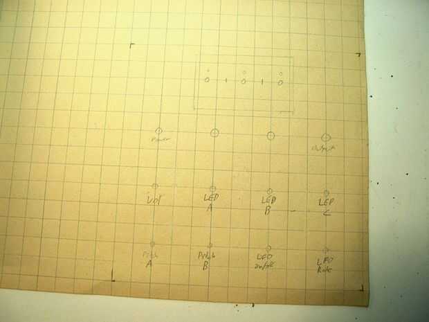 He trazado en el panel superior de mi caja en la papel milimetrado y planeado donde iría el varias partes (véase el cuadro arriba). Colocar sus controles y conexiones sin embargo le gusta, pero asegúrese de que hay suficiente espacio para las perillas y los controles no son demasiado masificados. ¿Se los dedos golpee otros controles al girar una perilla o un interruptor? Asegúrese de que sus manos no bloqueen los LEDs cuando se realizan ajustes. ¿Conseguirá el cable que conecta el amplificador en el camino? ¿Se encuentran sus luz resistencias dependientes de un modo que obtienen la mayor variación en la luz de los LEDs?
