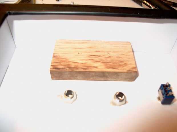 Una vez que haya determinado una buena disposición, la guía de papel milimetrado para su caja de la cinta y use un punzón u otra herramienta de punta para marcar las ubicaciones. Montar un bloque pequeño de madera en el interior de la caja de debajo de los orificios de sus tallos de LED. Utilice tornillos de la parte superior y un adhesivo apropiado para los materiales utilizados. El bloque de madera sirve para estabilizar los tallos y proporcionar un punto seguro para fijarlos. Debe ser lo suficientemente grande como para cubrir cada uno de los orificios del tres tallo adecuadamente y dar espacio para el tallo de tornillos de montaje. Taladre con cuidado cada punto al tamaño apropiado para su correspondiente componente. Ir lento y utilice la punta derecha y taladro de velocidad para el material de que está trabajando.