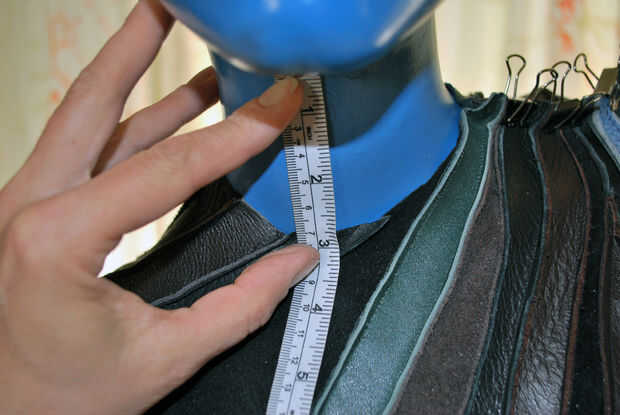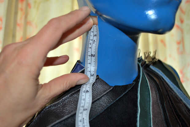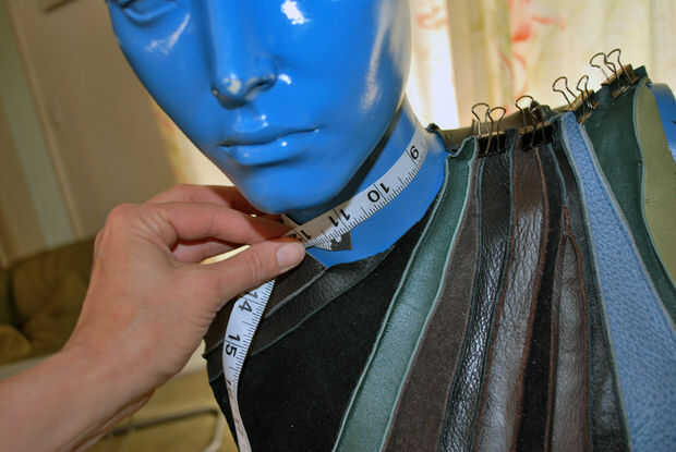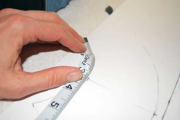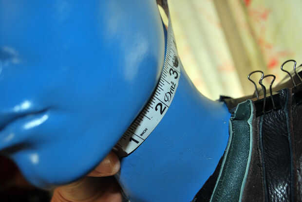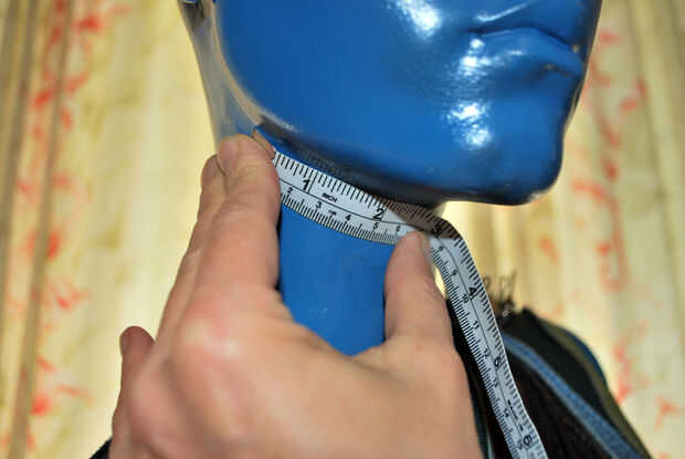 El cuello en mi maniquí es muy delgado. Tomé una serie de medidas de cuello: alrededor de la base del cuello, el centro del cuello (debajo de la barbilla a la base del cuello de centro) y la longitud del lado derecho debajo del oído a la base del cuello lado derecho. Que bosquejar las medidas en un trozo de tablero del arte, el centro de la marca en primer lugar. Luego, dibujé líneas curvas que unen los puntos en la parte superior e inferior. Esas líneas fueron mi mejor conjetura en la forma del cuello. Si no fuesen razón, ajuste en el formulario. Después de la redacción hasta el lado derecho, repetí el proceso para el lado izquierdo.