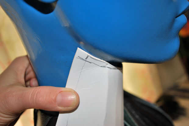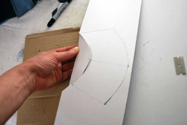 he añadido aproximadamente 3/8" a cada lado de la pieza de cuello y poner el tablero del arte en la parte superior una caja de cartón desdoblada. Esa caja sería mi superficie de corte. Utilicé una hoja de seguridad a la Junta a lo largo de mis líneas de lápiz. Puntuación a lo largo de las líneas facilita la pieza con pop out, sin tener que pulsar difíciles de romper a través de la Junta de.