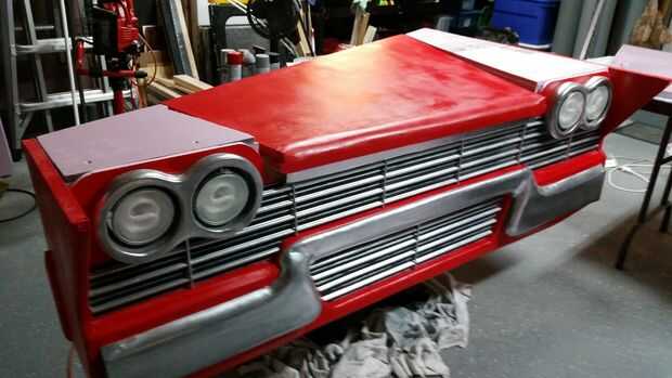 Un último detalle era un ornamento de parrilla Plymouth Fury, que por supuesto tallada en espuma rosa, preparado y pintado de oro.
