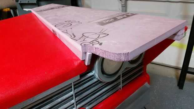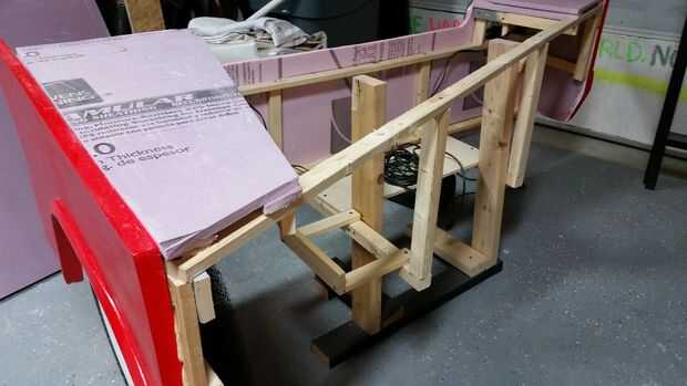 Los lados de la campana fueron construidos con dos capas de espuma. Una acumulación fue hecha aquí las esquinas podrían eventualmente ser bien redondeadas apagado. Dos capas construidas cosas que incluso con el borde frontal por encima de los faros.