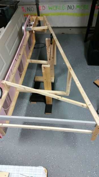 A continuación, necesitaba alguna estructura para mantener todo el asunto de la tierra a una altura adecuada. Un soporte en forma de L de 2 x 4 fue construido y atornillado a otras piezas de 2 x 2 que he añadido el centro de apoyo. Esta sección de soporte es pesada en relación a todo lo demás, por lo que todo lo mantiene agradable y estable. Las piezas inferiores fueron pintadas de negro plana para evitar que se note.