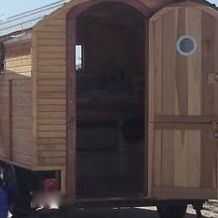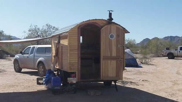 La estufa de leña calienta el espacio bien y rápidamente cada vez que enciende, y ya que no es conveniente en climas cálidos, una estufa de propano pequeño portátil 2 quemadores se guarda debajo de la cama para ser traído hacia fuera para cocinar sin calentar la casa.