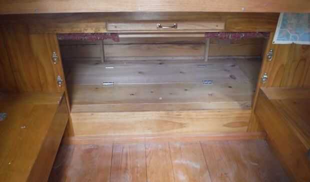 La cama es cerca de cuatro pies del suelo, con un espacio de almacenamiento debajo dividido en un espacio abierto y cerrado. El espacio abierto es en la parte superior directamente debajo de la cama. Una trampilla en el suelo de este espacio, que es aproximadamente un pie del suelo adecuada, se abre en un espacio cerrado debajo. Bancos se sientan un poco menos de un pie, los bordes junto a la cama. El espacio entre el Banco y el reborde es esencialmente una caja para más espacio de almacenamiento. Los bancos también servir como pasos hasta la cama.