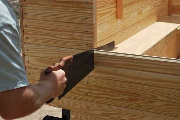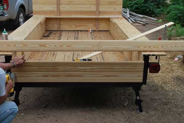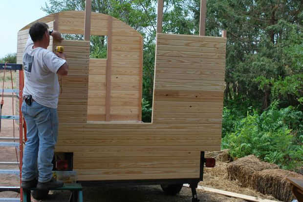 La pared posterior fue construida de la misma manera exacta como el frente, excepto que los listones fueron espaciados para que fuera contra los lados de la puerta para la estabilidad. La puerta fue desplazada del centro para crear espacios más viable al lado de la puerta interior. Debido a esto, se añadió un tercer listón en el lado con un muro de mayor resistencia. La pared fue construida como pared sólida, y la puerta fue aserrada posteriormente con una sierra de mano.