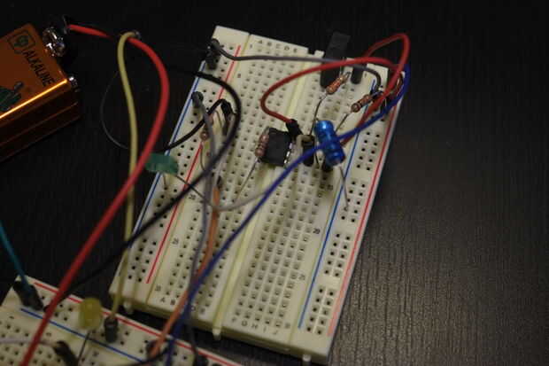 El plan comenzó simple. Puesto que nadie tiene mucho conocimiento sobre electrónica, solo queríamos trabajar el temporizador 555. Primero este tutorial fue elegido y seguido a, la salida es un LED y supposted a ser intermitente. Pasé casi una hora luchando con los componentes, tratando de encontrar la correcta. Después de completado, sin embargo, resultó ser realmente difícil de hacer la depuración, ya que la frecuencia de diseño es tan alta, que es imposible decir el LED si parpadea o no.