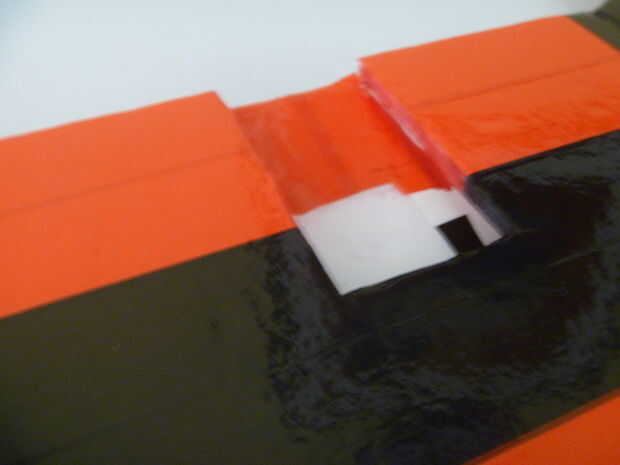 -Orificio de un tamaño de 60 XT en la nariz. Puede ajustar los alambres de la ESC a través de eso y en el área del hatch. Color de los bordes con rotulador negro para ocultarla. No hay duda que el Sharpie hace que el agujero se vea mejor.