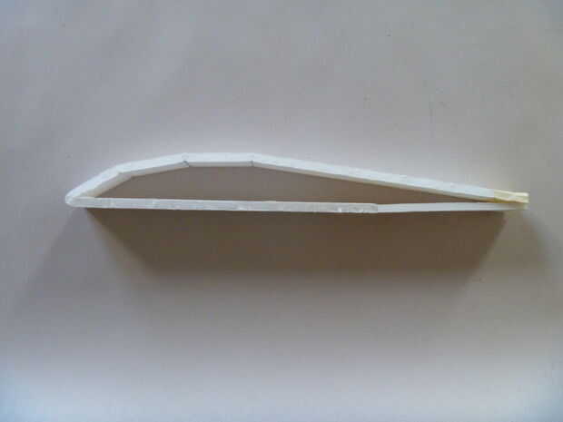 -El centro toda la sección es doblada y plegada como el modelo de superficie de sustentación por encima. Construcción de la misma manera Flite prueba su nariz contundente ala viceversa. Asegurar el pegamento doble bisel, puntuación de cortes, el mástil y el borde de salida completamente.