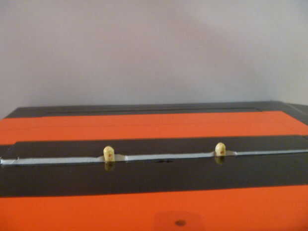 -Corte los pinchos a la longitud que cuando se inserta en el mástil, los orificios perforados peep hacia fuera cuando se cierra la escotilla. Pegue los pinchos con pegamento caliente.