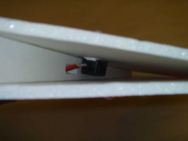 * Puede que necesite cortar una ranura en su mástil para el cable de servo pasar a través. Si no hago eso, el cable de servo habría conducido a la zona trasera detrás de la escotilla. Dependiendo de tu servo, puede que tenga una extensión.