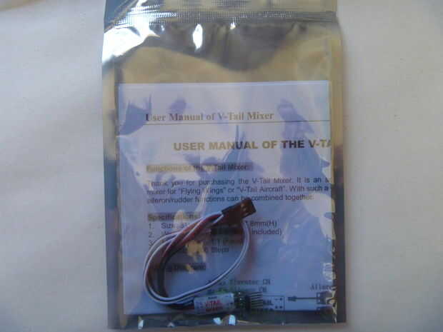 Si usted tiene un transmisor con elevón mezcla, no necesita un mezclador v-tail. Ya tengo radio unprogrammable de Hobbyking, compré un mezclador v-tail y había utilizado con resultados perfectos.