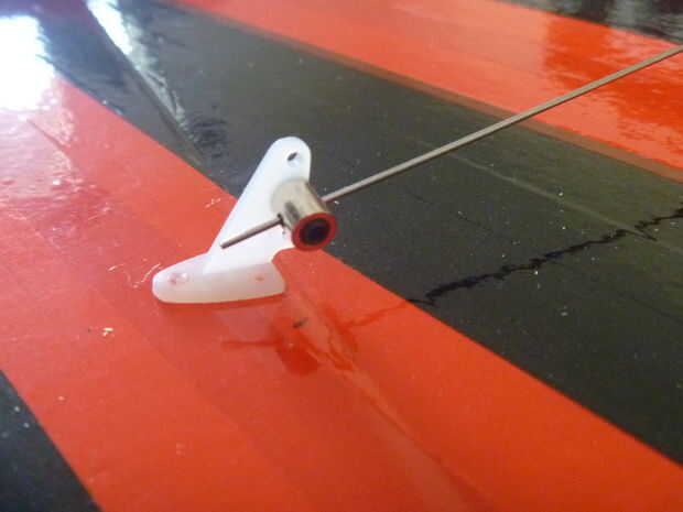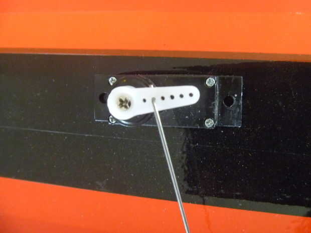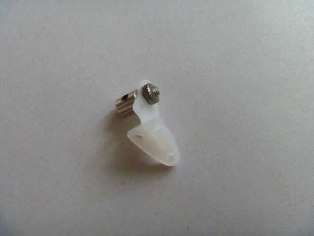 -Puse mi varilla en el agujero 2 º desde el centro del brazo de control, y los tiros son perfectos, si no un poco frenético (jeje). El tapón del acoplamiento se monta en el orificio central de la horn (el agujero tuvo que ser taladrada muy ligeramente) y una gota de super pegamento mantiene la tuerca en su lugar para que el tapón de acoplamiento puede girar libremente.