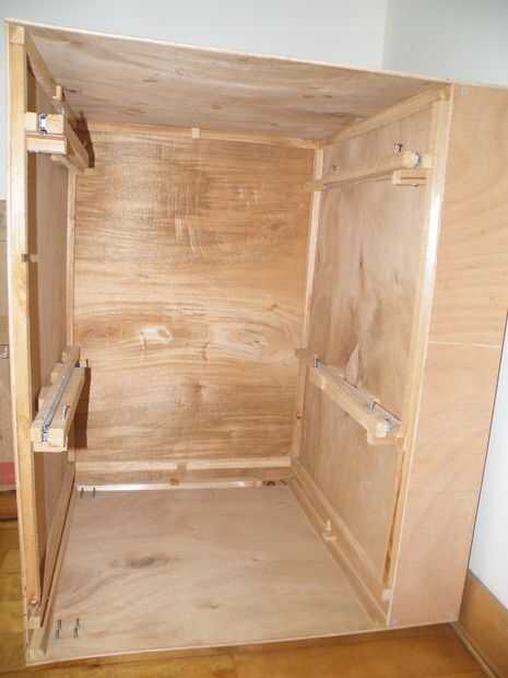 Elaborar un patrón y cortar la madera contrachapada. Cortar las tablas delgadas (sugiero cortar 2 × 4 lo largo si no puede obtener piezas más pequeñas) al tamaño y atornillarlos en la madera en las esquinas. Sugiero de perforación pequeños agujeros en primer lugar, esto hará que sea mucho más fácil para los tornillos a y no serán posible hacer estallar la cabeza. También es una buena idea para avellanar los orificios. De lo contrario las cabezas de los tornillos pueden rayar cosas. Puede hacer esto con una cubeta o un poco de tornillo grande y un taladro eléctrico.