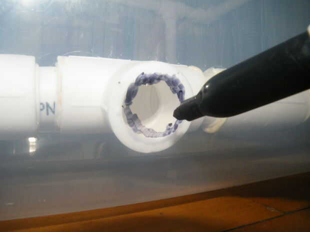 Con el marco de la pipa PPR completo, todo lo que tienes que hacer es marca donde la entrada se encuentra con la bañera. De fuera de la bañera, utilice un marcador para marcar donde se enfrenta a la t hacia el exterior. Luego retire la tubería de la tina. Con una broca pequeña (los más grandes son más propensos al agrietamiento plástico) Perfore un montón de pequeños agujeros en el borde del círculo, alrededor de todo el camino. Tenga en cuenta que si el agujero es un pelín demasiado bajo, no funcionará, pero si es un poco alto el tubo todavía será capaz de conectarse. Una vez que te has ido todo el camino alrededor, utilice el taladro para combinar todos los hoyos en uno (esto toma algo de presión y paciencia). Cuando la pieza está libre, utilice un pequeño archivo para eliminar los bordes irregulares. Cuando piensas que estás cerca de haberlo presentado suficiente, probar empujando un trozo de tubo a través para que pueda ver donde usted todavía necesita trabajar. No hagas el agujero todo más grande que necesario para el tubo de ajuste a través de.