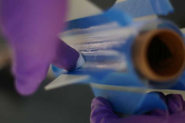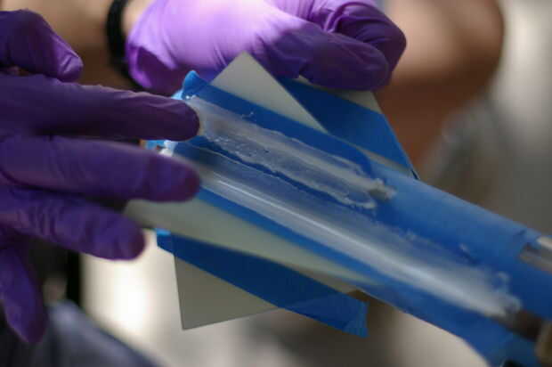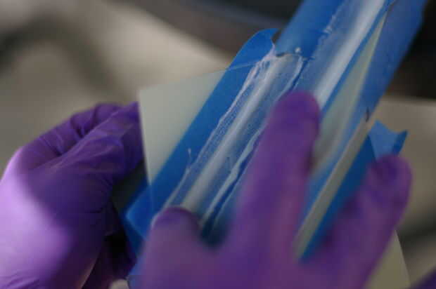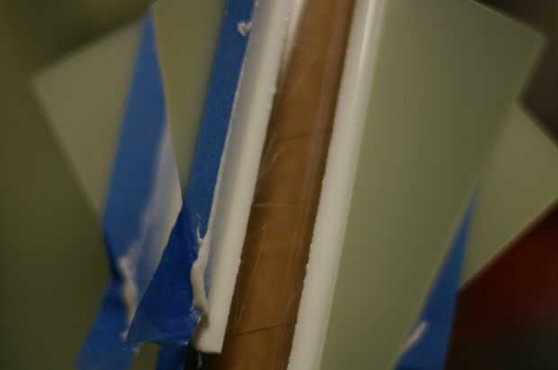 Si han enmascarado de las zonas que rodean el filete, pueden aprovechar una ventaja añadida en este paso. Después de que sus filetes se colocan pero antes de que el epoxi es seco, puede pelar la cinta, dejando los filetes perfectamente liso-cara, como se muestra en las últimas imágenes.