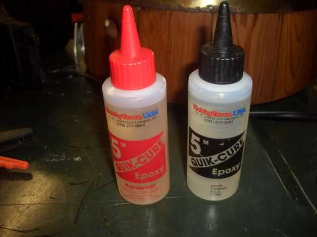 Para este paso, elegir utilizar un sistema rápido, epoxi 2 parte en lugar del espumado, pegamento de marca gorila que solía reforzar el cuadro anteriormente en el proyecto. Este es el mismo de epoxy que se utilizará más adelante para colocar el puente y la caja de hardware.