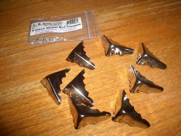 Para proteger las esquinas de la caja y vestido un poco, me fui con la 8-pack de níquel plateado las esquinas de la caja de fuente de Crafter C.B Gitty . Buen tamaño para mi caja, y llegaron con tornillos para la instalación.