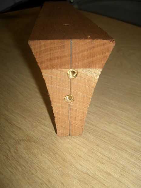 Los insertos tienen una muesca para el roscado con un destornillador de cabeza plana, sin embargo, estos son latón suave y después de destruir dos de ellos, encontré una manera mucho mejor que los instale. Antes de enhebrar en el cuello: primero Enrosque dos tuercas que empareja en el tornillo de máquina, luego enrosque el tornillo de la máquina de la inserción hasta la parte inferior del tornillo quede a ras con la parte inferior de la inserción. En segundo lugar, comience destornillando la tuerca más cercana a la inserción hasta que toque el inserto, afloje la tuerca de segunda hasta mermeladas hacia abajo en la parte superior la primera tuerca. Este crea una contratuerca en la parte superior del inserto. Ahora puede utilizar un zócalo para Enrosque el inserto en el agujero hasta que el inserto quede a ras, o justo debajo de la superficie de la madera. Antes de enhebrar en un colocar una muy pequeña gota de epoxi en la rosca exterior del inserto para asegurar que no salen. Luego, simplemente sacar el tornillo de máquina y quite las tuercas. Voila, inserte perfectamente hilos, con no mishapenness debido a los metales blandos.
